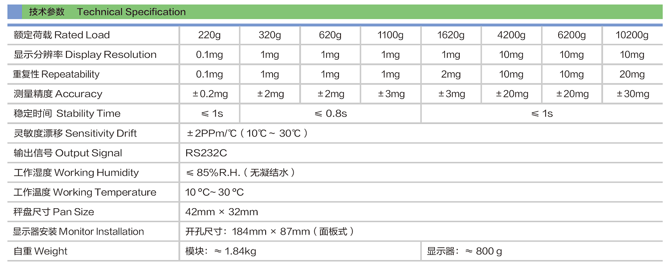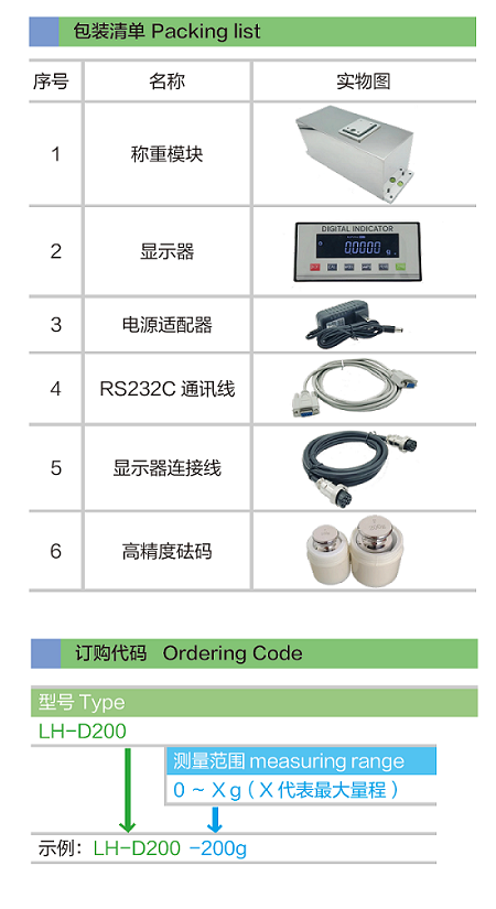 LH-D200: 外壳采用不锈钢材质,秤盘铝合金材质;航空插头出线,连接方便;量程小,精度可以达到微克级;配有水平仪,方便调整;可配套LH-PT200高精度显示器